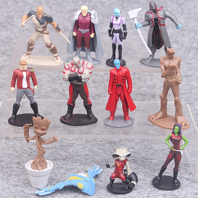 12pcs Marvel Guardians of The Galaxy Star Lord Groot Gamora Rocket Raccoon Drax Action Figure Toys PVC Model Doll Birthday Gift