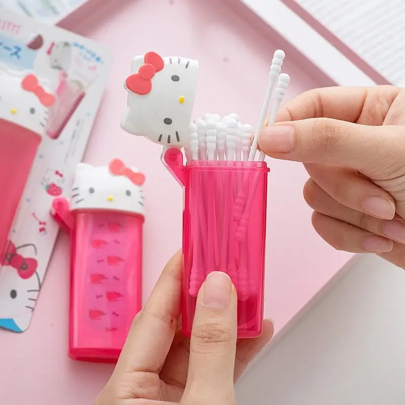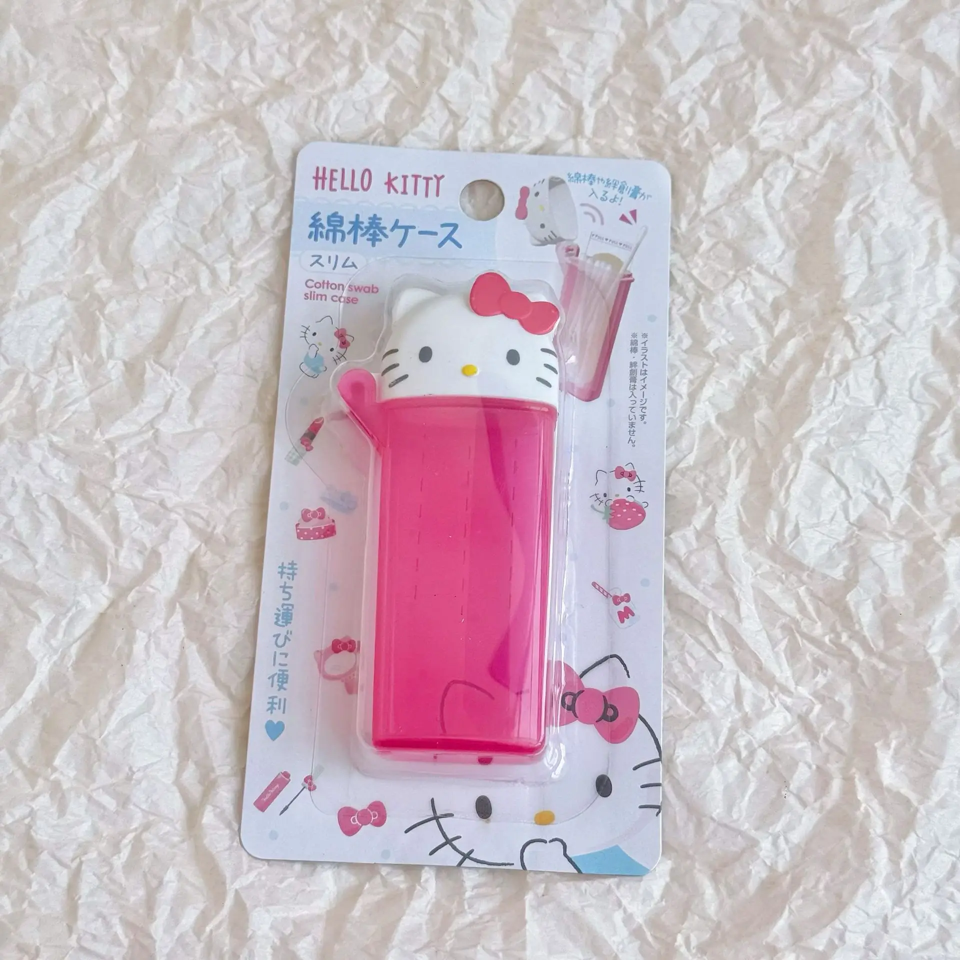 Cute Sanrio Hello Kitty Storage Box Kawaii Anime My Melody Toothpick Cosmetic Swab Storage Box Portable Travel Mini Container