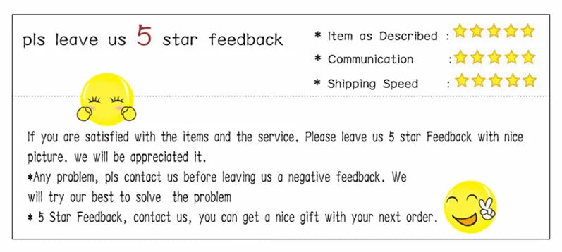 If you are not satisfied with the product, please feel free to contact me for a solution instead of leaving neutral or negative feedback, which means you do not need our after-sales service. We will do our best to solve the problem.