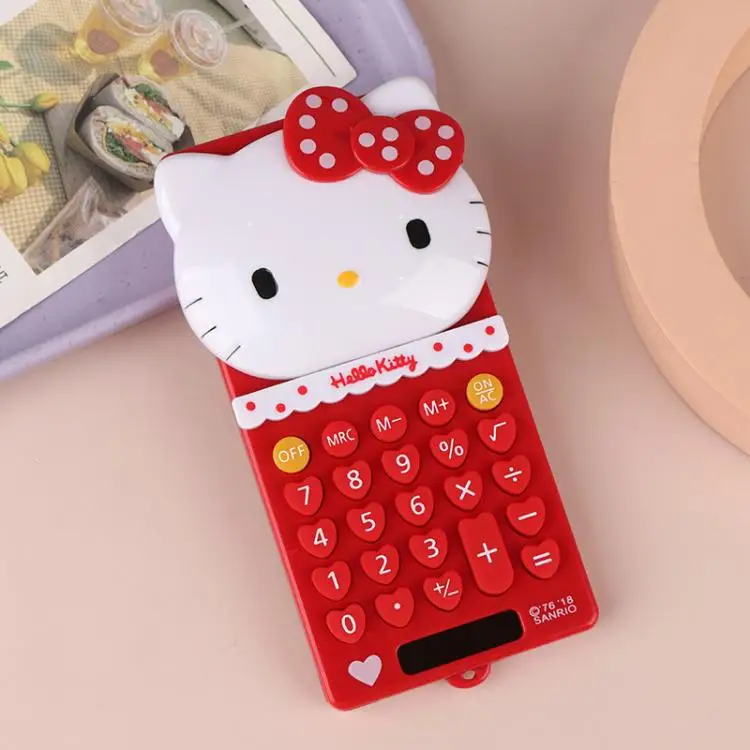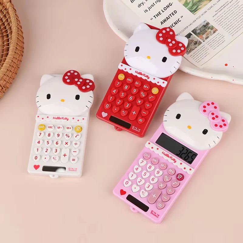 Hello Kitty Pocket Calculator Cute Electronic Push Back Design Portable Office Supplies Math Device Kawaii Student Children Gift