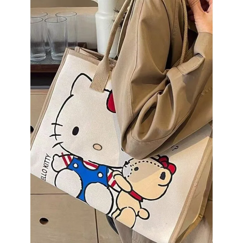 Hello Kitty Sanrio Y2k Tote Canvas Bag, Cute CanvasShoulder Bag, Cartoon Anime Handbag ForSchool Work Travel Shopping Schoolbag