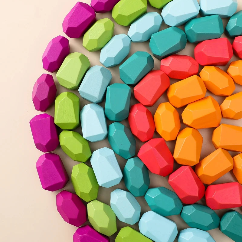 Wooden Rainbow Stones Building Blocks Colorful Wood Toy Block Stacker Balancing Games Montessori Educational Toys for Children