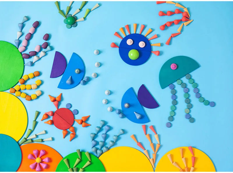 Wooden Rainbow Block Wood Stacking Toys Grimms Rainbow Building Blocks Balls Montessori Eductaional Toy Kids Rainbow Stacker