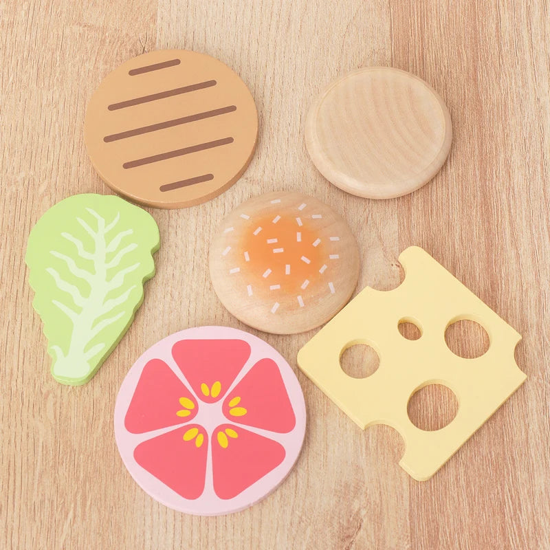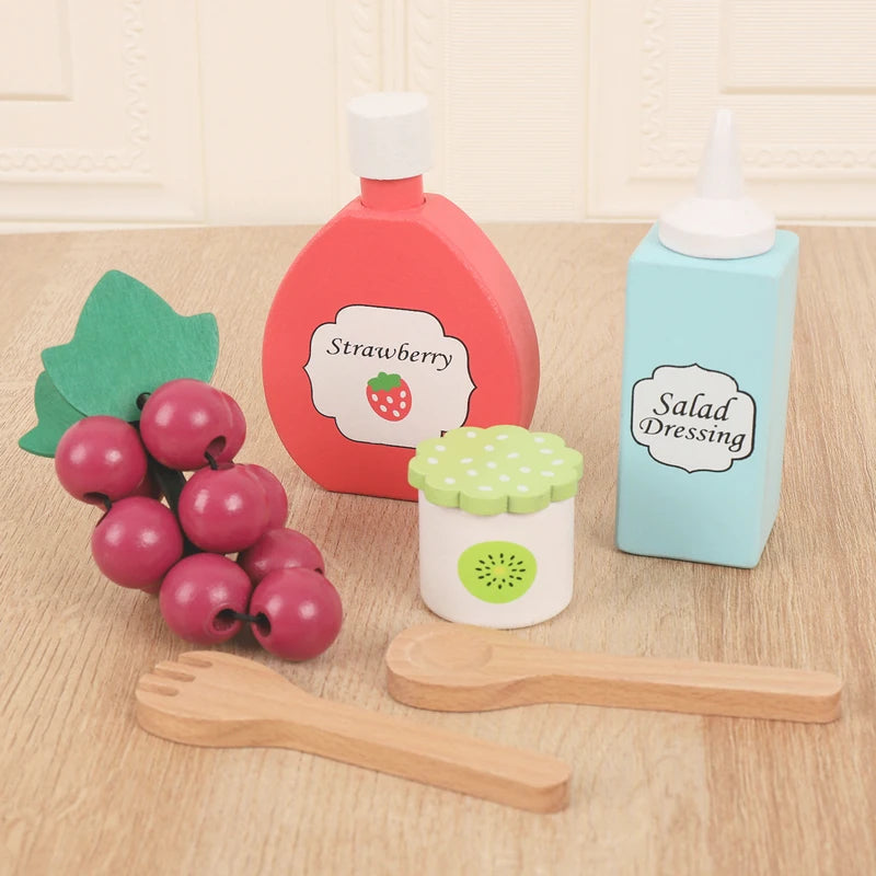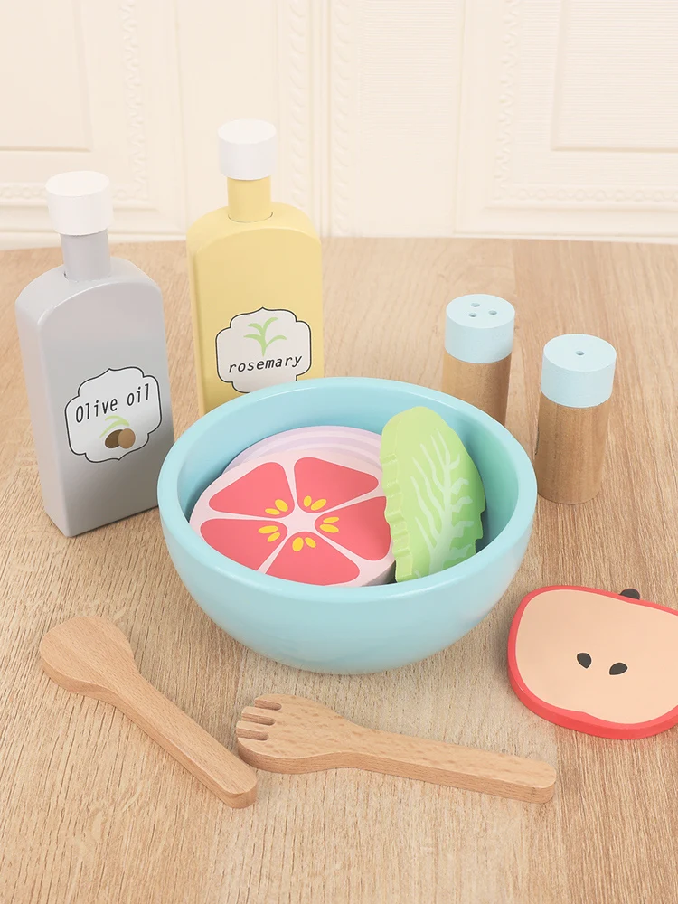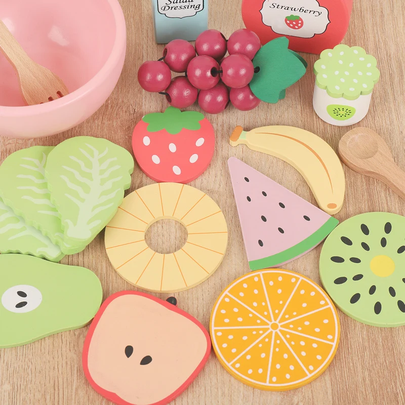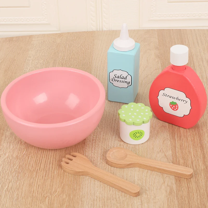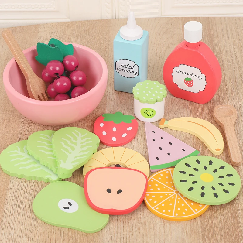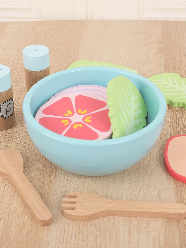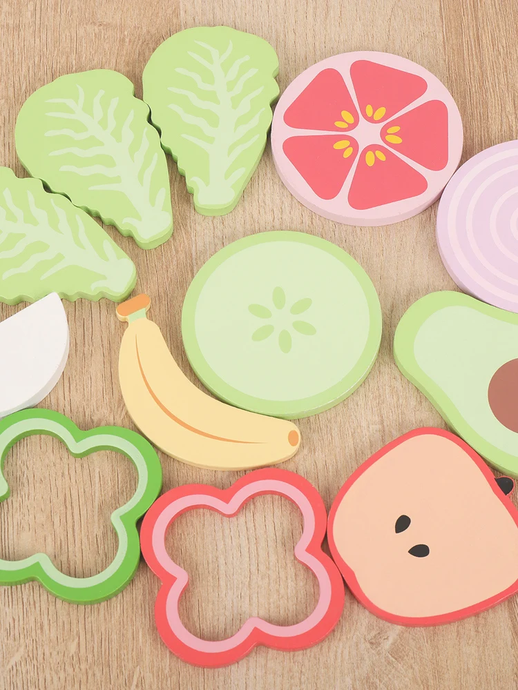 Wooden simulation vegetable salad breakfast french fries toy fruit salad popsicle house American food combination set