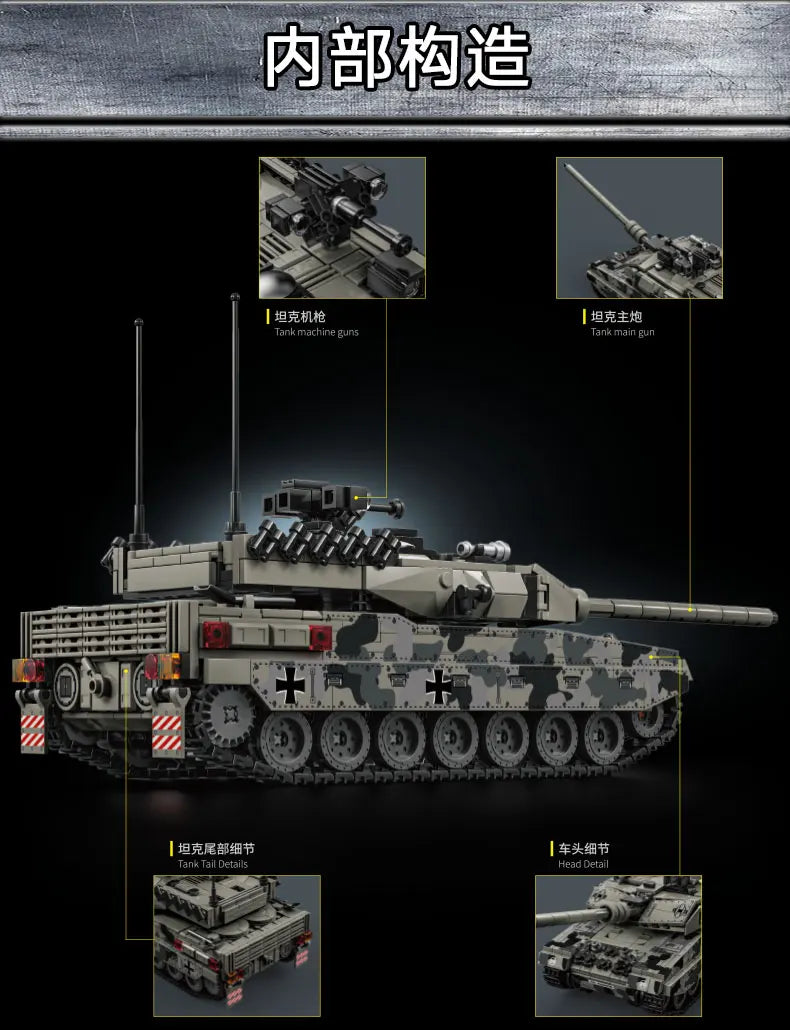 World War 2 WW2 Army Military Soldiers SWAT Leopard 2A7 Main Battle Tank Assemble Building Blocks Bricks Children's Toys Gift